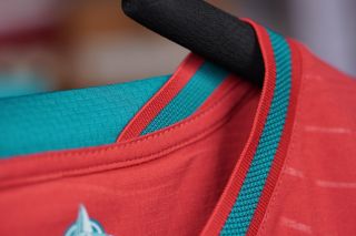 球员版球衣使用了UltraWEAVE Thermoadapt的新面料,比原本的UltraWEAVE更轻薄,弹性也更大一些。