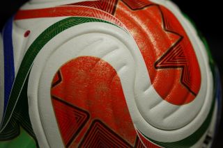打开上盖,球体呈现在我们面前。这是一颗充满了三重元素的足球,不仅是颜色,花纹设计上也是如此。