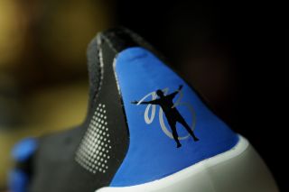 首先这双球鞋采用了黑白蓝的配色方案,相比于猎鹰经典的黑白红也是不遑多让。