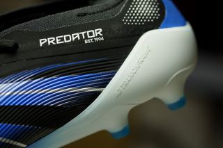 上周末的西班牙国家德比,贝林厄姆穿着自己的全新专属战靴送出一球一助攻,笑傲全场。今天我们就来一起看看这双阿迪达斯为贝林厄姆推出的第三双专属猎鹰足球鞋。首先这双球鞋采用了黑白蓝的配色方案,相比于猎鹰