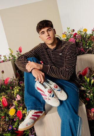 这款靴子从视觉上看绝对惊艳。鞋面采用简洁的白色,标志性的阿迪达斯三条纹以柔和的粉色和红色晕染点缀其间。鞋面上点缀着手工刺绣的康乃馨图案,灵感源自西班牙本土花卉,以蓝色和深红色丝线交织而成,繁花似锦。每个细节都精雕细琢。而最引人注目的莫过于鞋舌上那蜿蜒盘旋的缝制花卉图案,令人叹为观止。