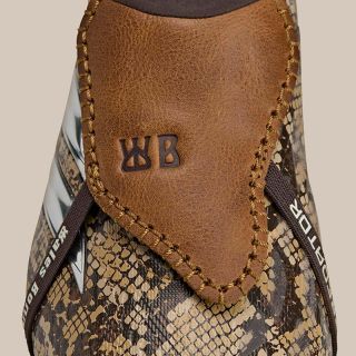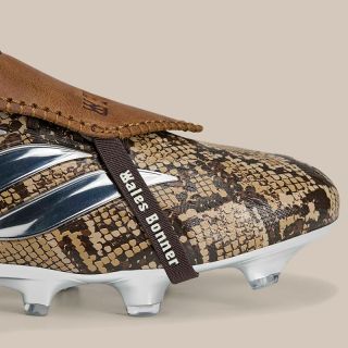 这款Predator足球鞋以质感和色调而非张扬的设计惊艳亮相。蛇纹鞋面、低调的金色、深邃的棕色,这些材质仿佛来自另一个世界,前所未见。经典的鞋型依然保留着锋芒,但在Wales Bonner的镜头下,它展现出截然不同的风采。还有那镀铬鞋底……简直太吸睛了!