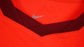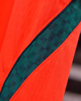 国足主场新球衣一改以往的大红主色,类似橙红的配色被Nike定义为“亮深红”,辅以领口袖口的枣红色与两肋的“暗宝蓝”,新鲜度还是蛮高的。