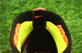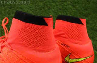 此次Nike所展现的最大变革就在球鞋的鞋口之上——Flyknit针织面料的中帮设计。中帮的造型根据人体踝骨形状做了定型,并有一定的拉伸范围。其作用在于将鞋子、踝部、小腿连为一体,它不仅仅是穿在脚上的一双球鞋,更是能和身体结合在一起的一双“脚”。这个概念听起来比较虚幻,直观点说就是在做大幅度侧向动作的时候,鞋帮给脚踝的支撑一直延续到小腿下部,让你更放心从容地施展表演。当然,防止杂物跑进鞋子里也是大家都能想到的作用,要知道鞋子里的异物会分散你踢球时的注意力。中帮设计本身区别于“护踝”或“球袜”,更像是两者的结合体。但是织物终究是织物,穿脱次数多了,终会发生或多或少的弹性形变。而中帮和脚背部分没有热熔膜,实战过后的清洁难度不小。编者的Magista Obra雨战了一次后,味道很重,一般的清洗很难清楚异味。根据负责视频评测的同事小唐的建议,可以考虑用止汗露来清除异味,最近编者也会实际尝试一回。