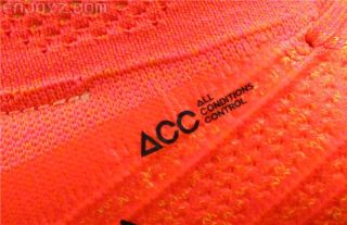 ACC全天候掌控科技消除了鞋面防水的根本问题——球鞋的表面覆盖了双层热熔膜,超薄超软的热熔膜不影响触感,但很好地阻挡了雨水的侵袭,而且雨水接触鞋面后会迅速散落,确保鞋面在任何天气下都触感如一。热熔膜的另一个妙用是增加了针织面料的强度。