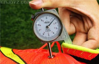 有热熔膜的鞋面厚度为1.4毫米。可以说是目前为止比较轻薄的鞋面了。