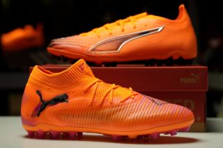 此次我们拿到了MG大底版本的Ultra 6与Future 8足球鞋,两款球鞋都采用了亮橙色作为主色。