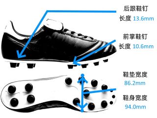 足弓的推杆区域有两块密集的凸点设计,也能有效提升传控效率。