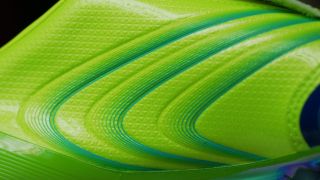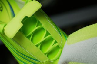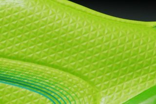 +F50 TuniT鞋面最大的特色就是魔术贴鞋带盖,能够完全覆盖系带系统,提供一个平整的触球表面。