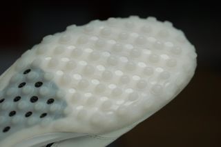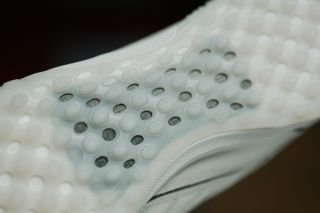球鞋的足中位置采用了大面积的碳纤维板,能够保证出色的抗扭性能,同时不会额外增加过多的重量。