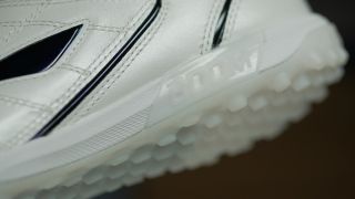 新配色的李宁钰3 Elite TF采用优雅的白黑配色设计,但黑色的Logo在光线反射下会呈现蓝紫色。
