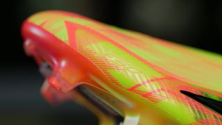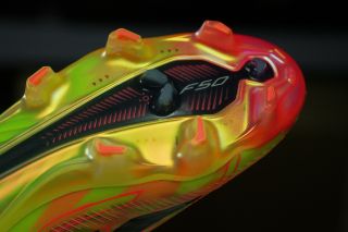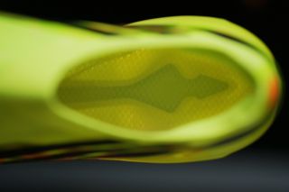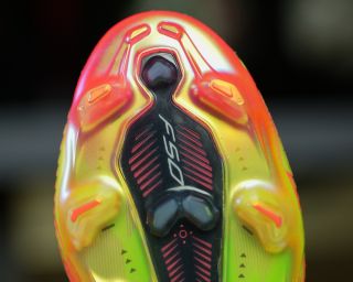 图中可以看到F50 SPEEDSYSTEM大底的双层结构,中间的黑色不透光部分能够提供额外的刚性,提升球员的爆发力。